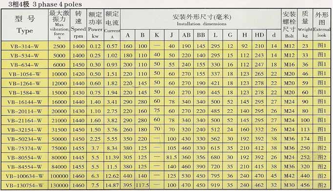 8.VB系列振動電機(jī),功率范圍0.12~25KW,2、4、6、8極,激振力為2.5~300KN,共計五十余種規(guī)格型號。