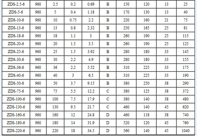 ZDS振動(dòng)電機(jī)型號技術(shù)參數(shù):
